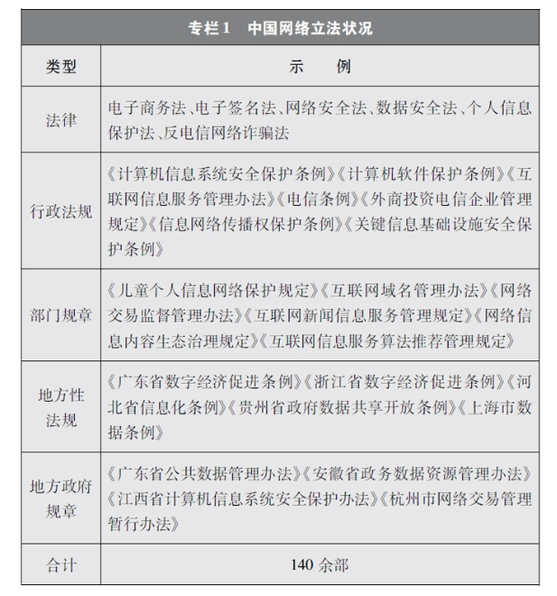 中國(guó)網(wǎng)絡(luò)立法隨著互聯(lián)網(wǎng)發(fā)展經(jīng)歷了從無到有、從少到多、由點(diǎn)到面、由面到體的發(fā)展過程。第 一階段從1994年至1999年,是接入互聯(lián)網(wǎng)階段。上網(wǎng)用戶和設(shè)備數(shù)量穩(wěn)步增加。這一階段網(wǎng)絡(luò)立法主要聚焦于網(wǎng)絡(luò)基礎(chǔ)設(shè)施安全,即計(jì)算機(jī)系統(tǒng)安全和聯(lián)網(wǎng)安全。第二階段從2000年至2011年,是PC互聯(lián)網(wǎng)階段。隨著計(jì)算機(jī)數(shù)量逐步增加、上網(wǎng)資費(fèi)逐步降低,用戶上網(wǎng)日益普遍,網(wǎng)絡(luò)信息服務(wù)迅猛發(fā)展。這一階段網(wǎng)絡(luò)立法轉(zhuǎn)向側(cè)重網(wǎng)絡(luò)服務(wù)管理和內(nèi)容管理。第三階段從2012年至今,是移動(dòng)互聯(lián)網(wǎng)階段。這一階段網(wǎng)絡(luò)立法逐步趨向全面涵蓋網(wǎng)絡(luò)信息服務(wù)、信息化發(fā)展、網(wǎng)絡(luò)安全保護(hù)等在內(nèi)的網(wǎng)絡(luò)綜合治理。在這一進(jìn)程中,中國(guó)制定出臺(tái)網(wǎng)絡(luò)領(lǐng)域立法140余部,基本形成了以憲法為根本,以法律、行政法規(guī)、部門規(guī)章和地方性法規(guī)、地方政府規(guī)章為依托,以傳統(tǒng)立法為基礎(chǔ),以網(wǎng)絡(luò)內(nèi)容建設(shè)與管理、網(wǎng)絡(luò)安全和信息化等網(wǎng)絡(luò)專門立法為主干的網(wǎng)絡(luò)法律體系,為網(wǎng)絡(luò)強(qiáng)國(guó)建設(shè)提供了堅(jiān)實(shí)的制度保障。
