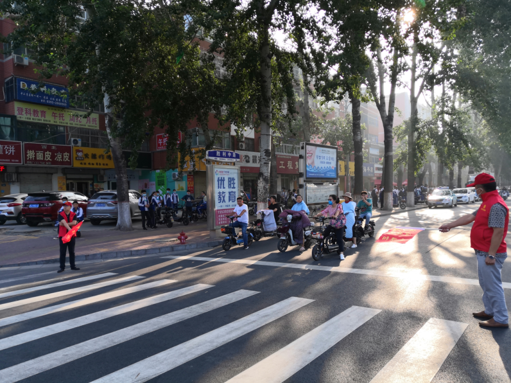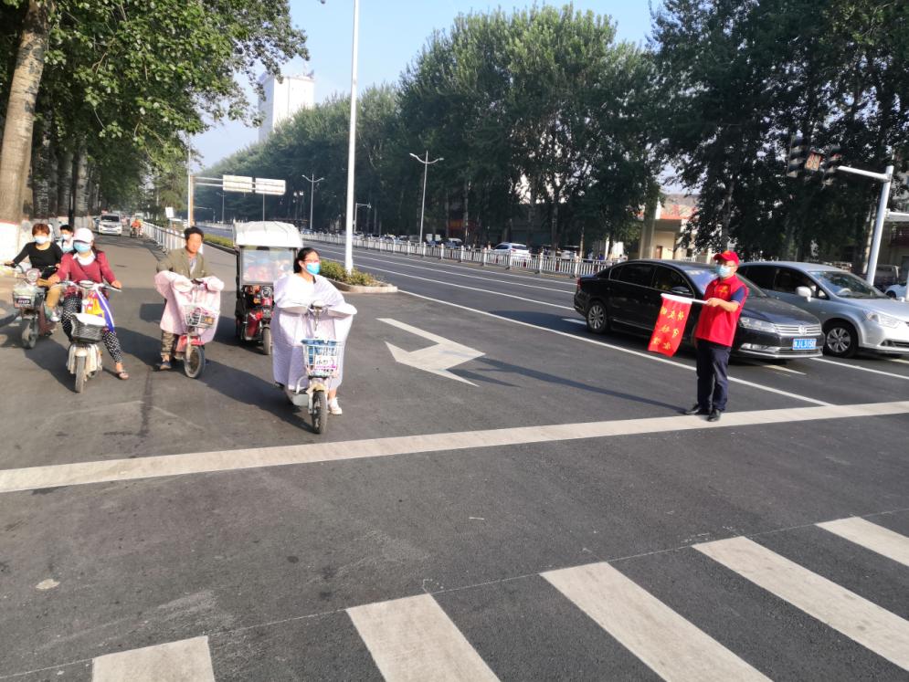 雖然天氣炎熱,志愿者們依然堅守崗位,認真開展"文明交通"勸導活動。身穿紅馬甲,手持指揮旗,志愿者每兩人一組整齊地站在斑馬線兩側,積極勸導身邊的行人,不放過任何一種違反交通規(guī)則的行為,使得路口交通秩序井然有序。志愿者們在交通執(zhí)勤過程中,還不忘熱心幫助他人,攙扶老人、孩子、殘疾人過馬路,為問路人指明方向等等,受到過往行人的陣陣好評同時及時勸導行人不按信號燈通行、電動車逆行、不按道行駛等不文明行為,并呼吁廣大市民積極響應創(chuàng)建全國文明城市文明交通勸導活動,彰顯“全國文明單位”良好形象。